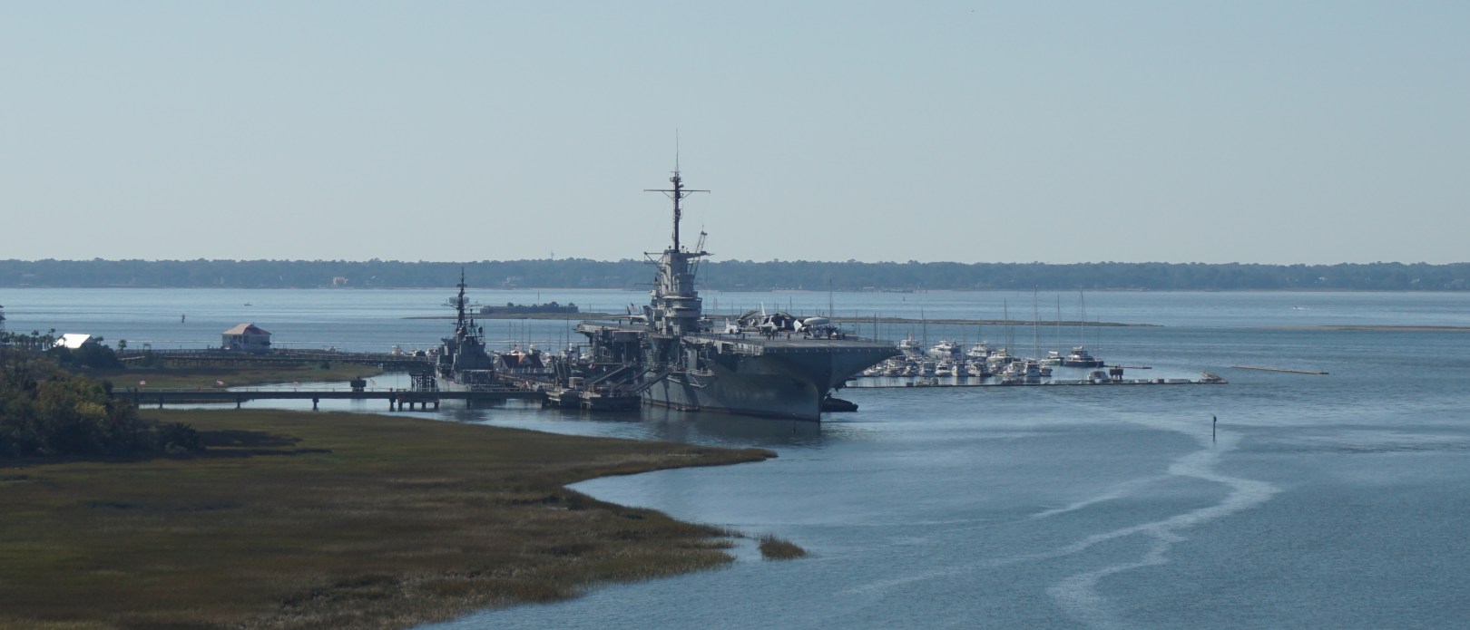 If you’ve ever looked at a map of Charleston, you may have noticed a lot of water (duh) , and water means that there are a lot of bridges (duh, again), the most prominent being the Ravenel Bridge. A massive cable-stayed construction, the Ravenel Bridge connects downtown to Mt Pleasant. We walked up the 2.5 mile bridge in the pedestrian lane and were rewarded with 180 degree views that include downtown Charleston and the aircraft carrier at the Patriots Point Naval & Maritime Museum.