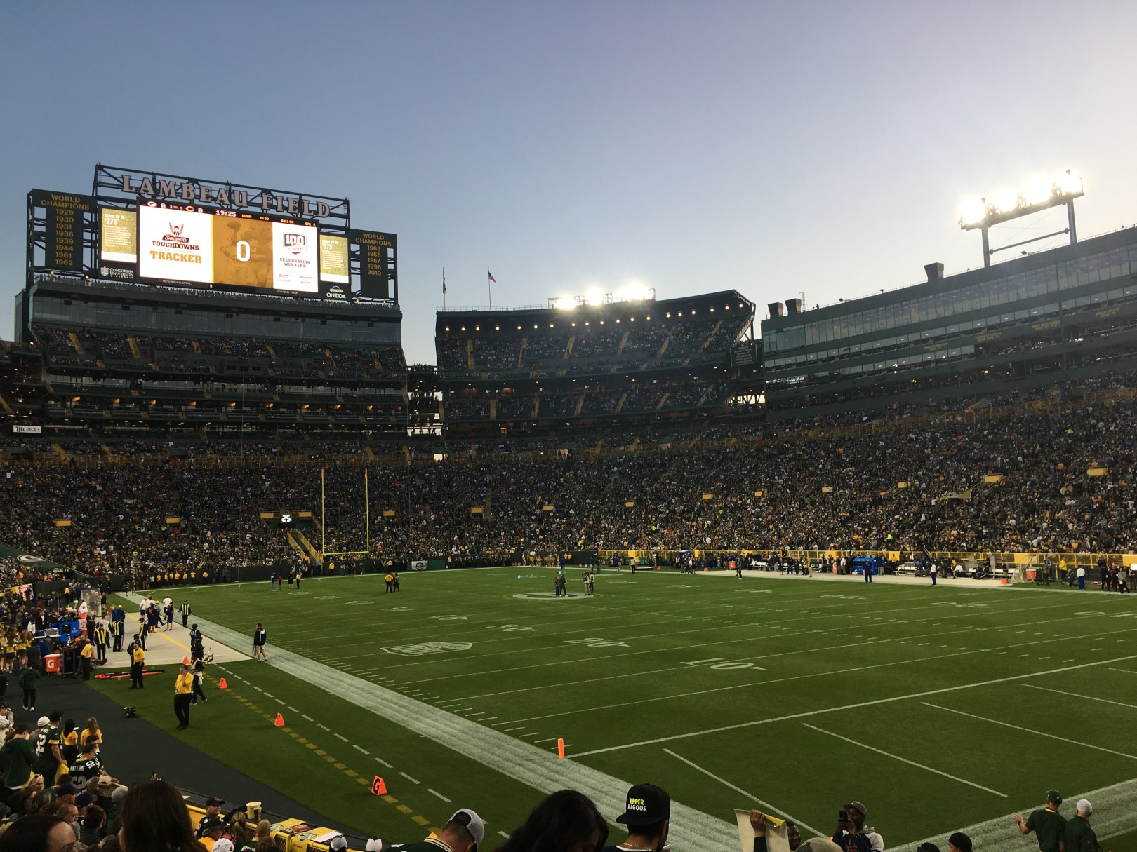 The moment of truth came when it was time to call our Uber. It took our driver Lisa about 15 minutes to get to the park from the east side of Green Bay. She dropped us off right at the stadium and we made plans to meet up with her after the game to get a ride back. That Wisconsin hospitality! :) We learned that a ton of Uber drivers descent on the town for Packers-Bears weekend so there isn’t usually trouble finding a ride. Lisa told us that some people even Uber all the way back to Chicago and Milwaukee!