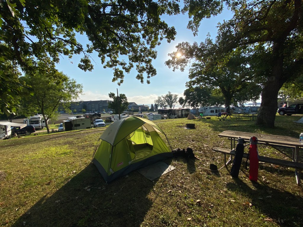 At this point it was around dinner time so we headed south down the Mississippi even further to Lake City. We ordered pizza (as we are known to do) and checked out the harbor. The municipal campground was closed for the year due to the COVID-19 pandemic but I gave the local trailer park/campground a call and though they don’t usually get tent campers, our boy Smitty hooked us up with a site.