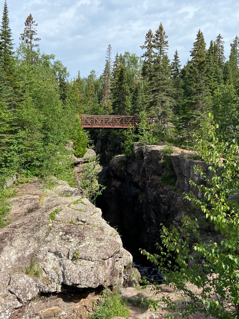 That afternoon, we drove up to Canada’s border and Grand Portage State Park, home of Minnesota’s tallest waterfall. This is the only state park without a campground and the entrance is literally feet away from the US/Canada border patrol. There is a paved and very accessible trial to get to the falls.