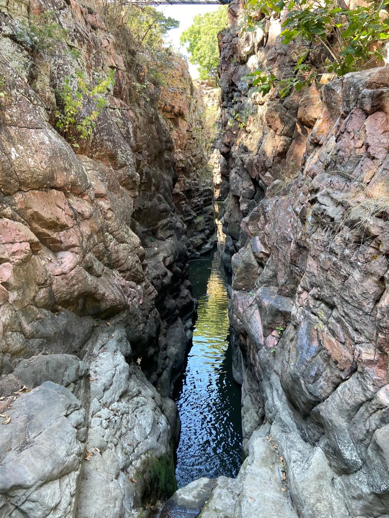 On our way into South Dakota, we swung by Devil’s Gulch Park in Garretson, SD. Legend says that the infamous outlaw Jesse James avoided capture here by jumping the ravine on his horse. Although most historians agree that jumping the ravine is impossible. It was a super crowded Saturday at the park, but we did hike around and let Audi take a dip in Split Rock Creek.
