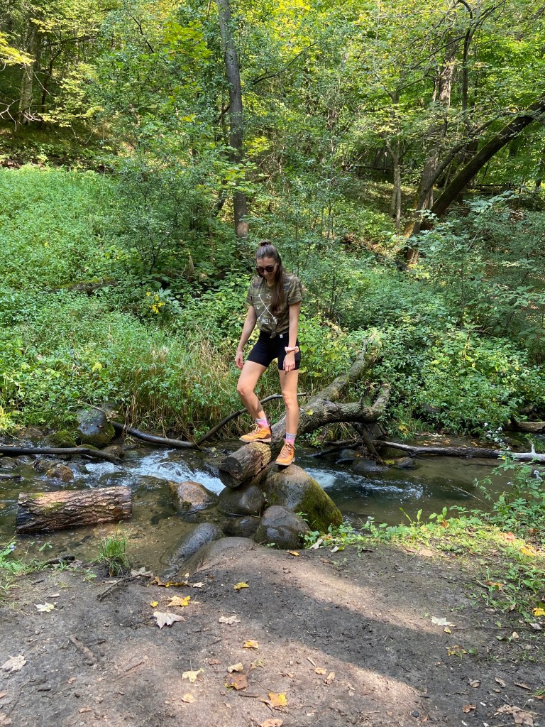 It’s not a very big state park but there are 4 miles of hiking trails. After wandering around for a few hours we found ourselves across the river from the parking lot. So we took off our shoes, held on tight to Audi’s leash and hopped across the rocks to the other side. Audi’s four legs were much more efficient than our two, but we all made is safely across.