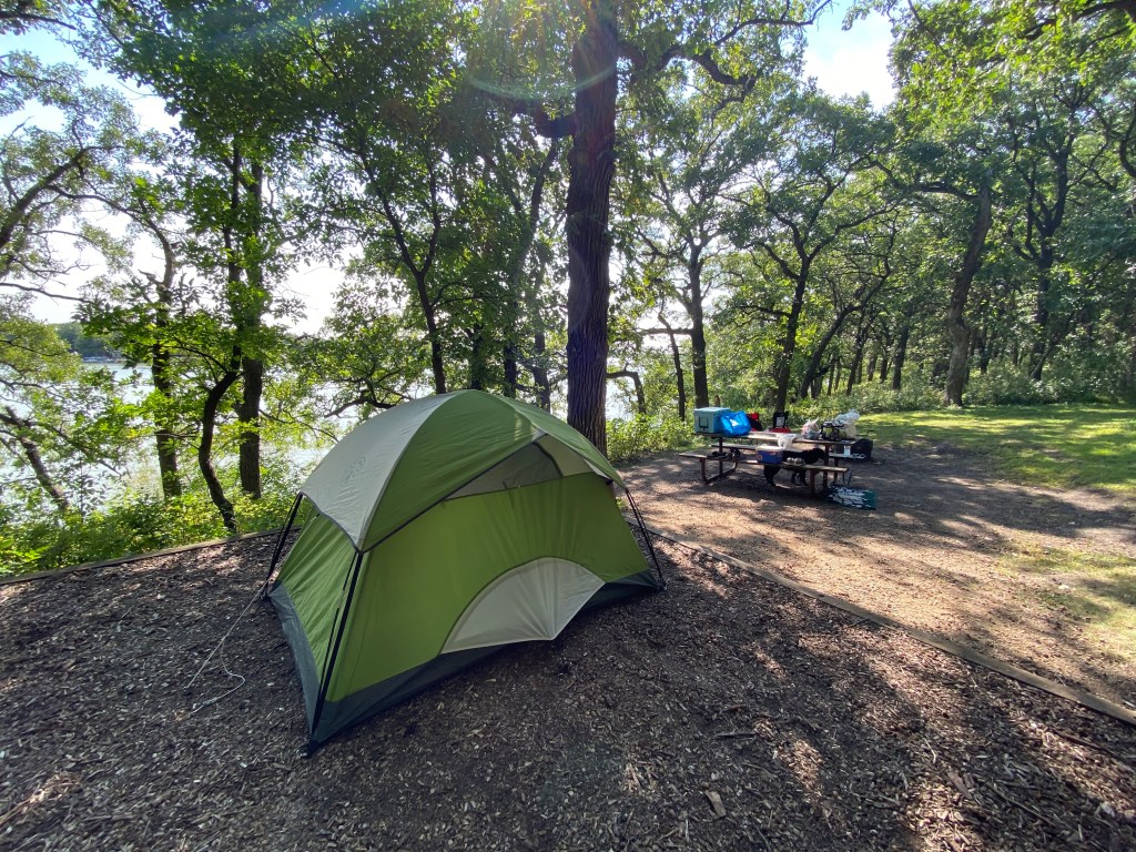 After a long hike, we had a quick snack from the tailgate of our car before heading to our next campsite at Lake Shetek State Park. Here we had another cart-in spot and it was an incredible location! We were on the end of a row of sites and directly on the lake’s shore. We set up camp and decided to go for a dip in the lake to wash off the morning’s hikes.