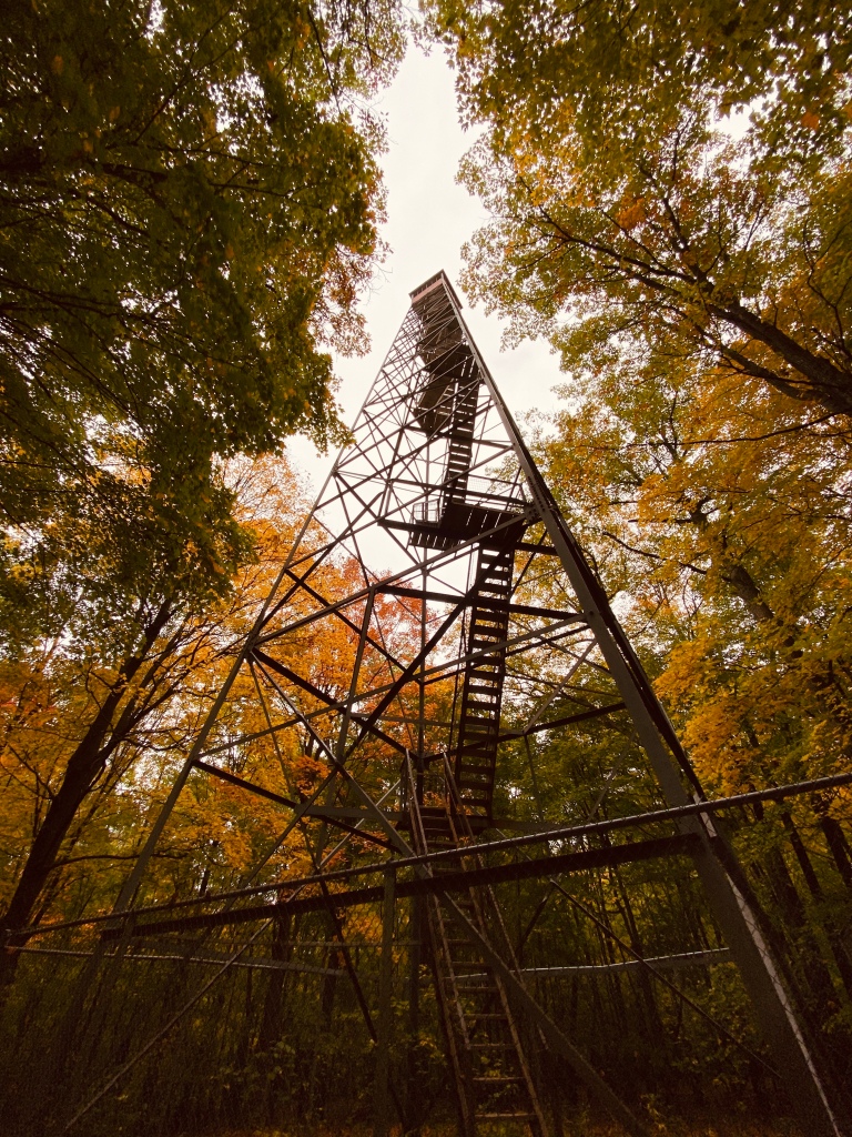 A highlight of the park is the 100-foot observation tower that would be perfect for viewing the fall colors but unfortunately it was closed and will remain closed for the rest of the season. It was still beautiful to hike along the Ogechie Lake and Rum River. We even saw a bald eagle chilling in a tree.