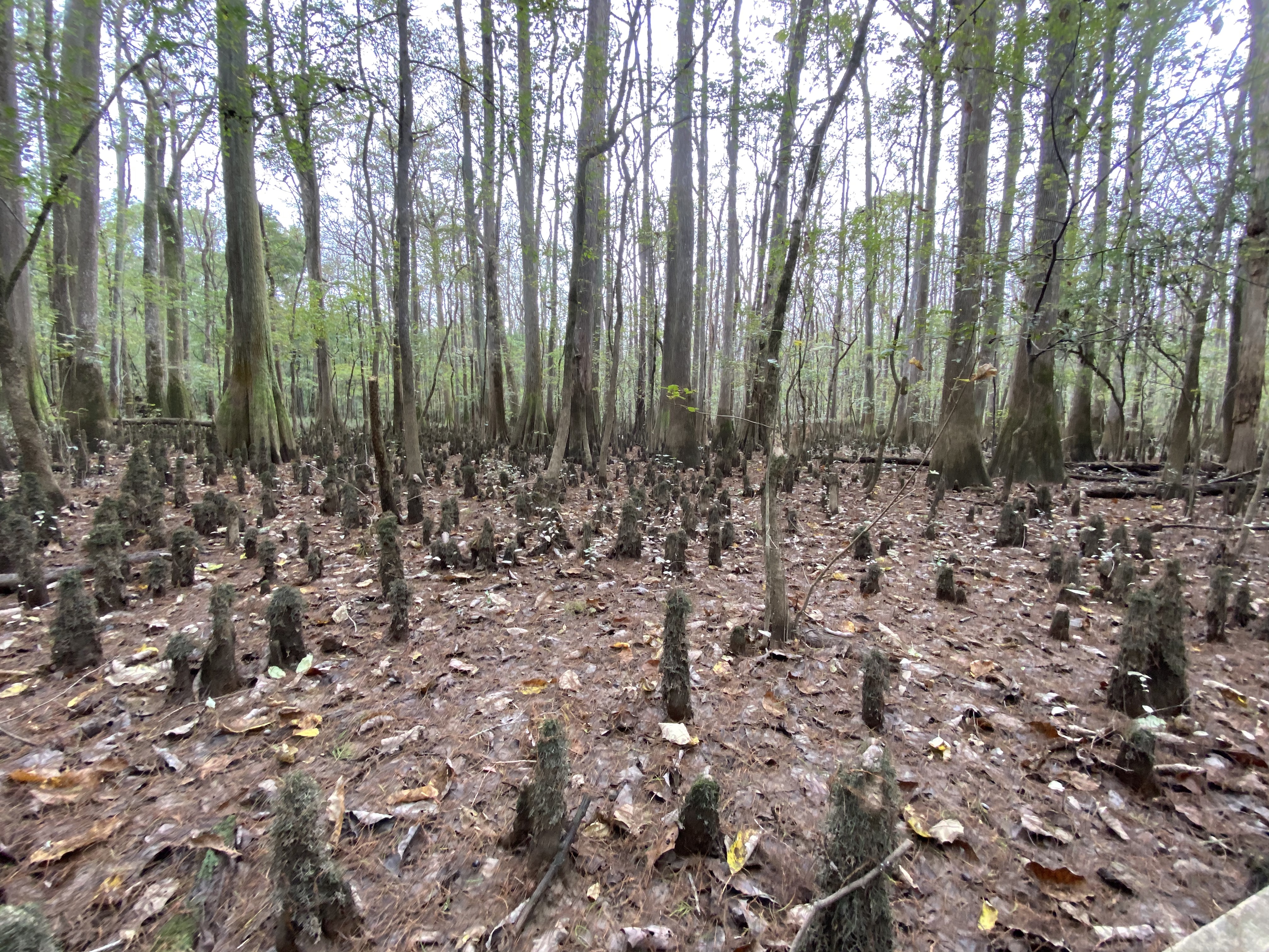 I think Congaree National Park is beautiful, important and fascinating and here’s why: it was established to preserve the last remains of old-growth floodplain forest. (Floodplain a.k.a. swamp.) What was once 35 million acres spanning across southern United States is now down to less than one half of a percent —11,000 acres—within this National Park.