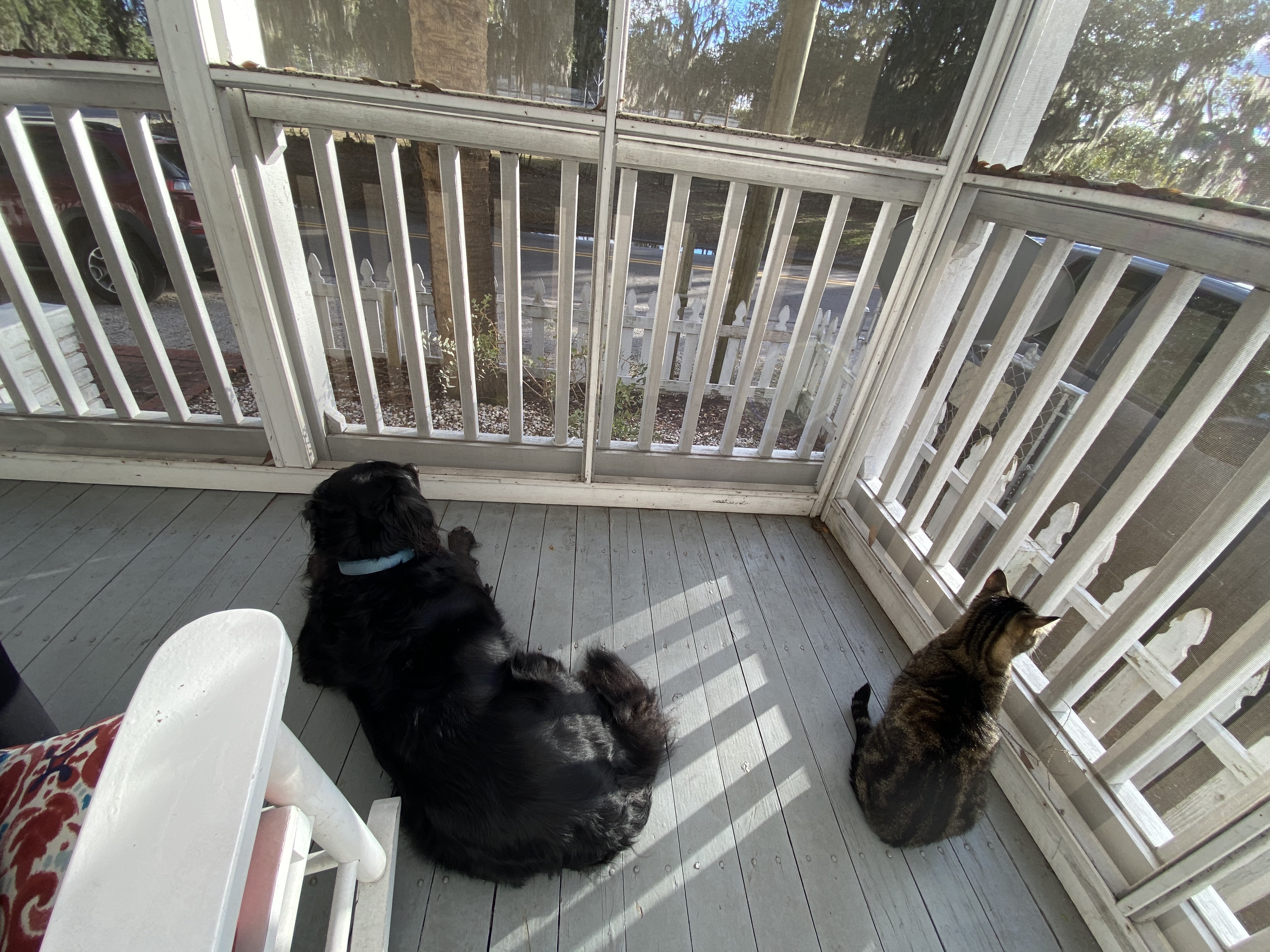 I’ve been walking my dog Audi every morning and evening and working from our Airbnb during the day. Having a backyard to let the dog out and a screened in front porch for the cat has been a huge highlight of this house. This is our cat Javi’s first experience with the outside world. So far she is not a fan of cars, loud trucks, passerby’s and everything else.