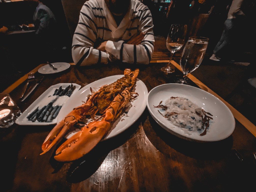 On what was probably our 3rd dining-in excursion of the pandemic, we went to Saltus River Grill in Downtown Beaufort for Valentine’s Day. They were having a Valentine’s Day special and we split this giant stuffed lobster. It was divine.