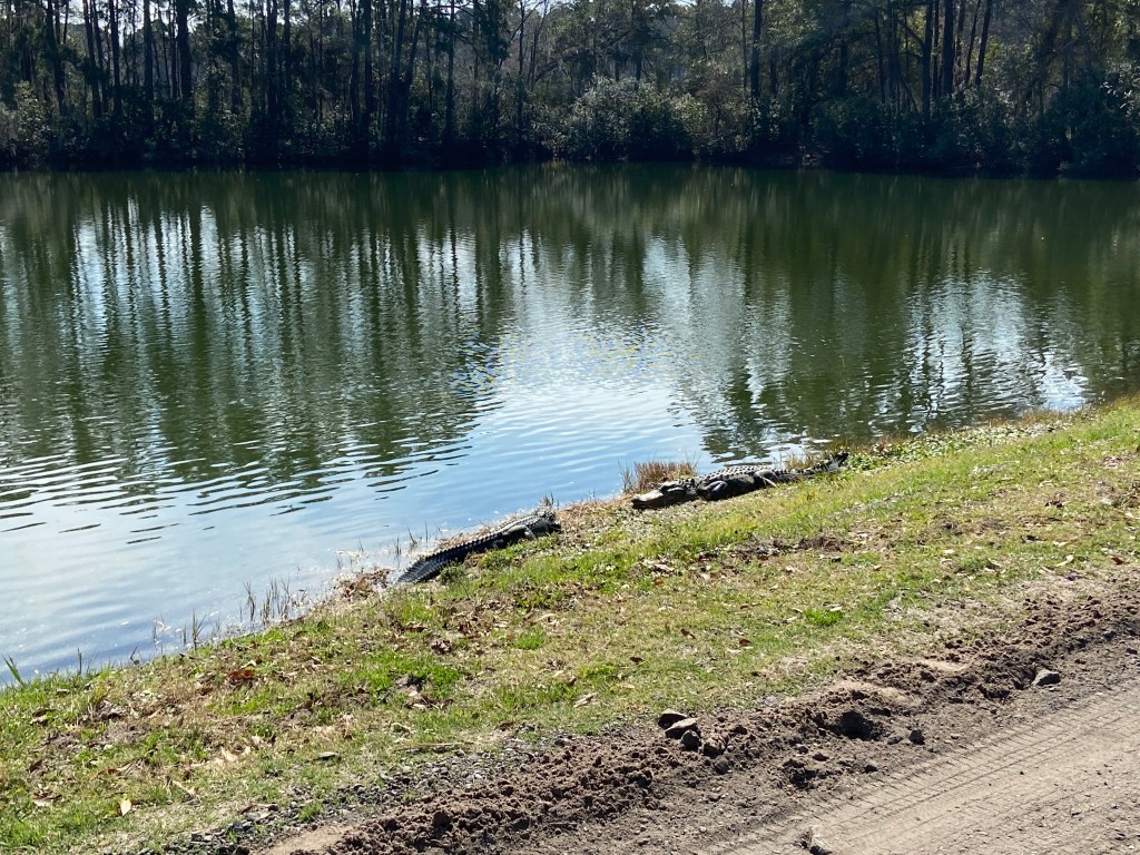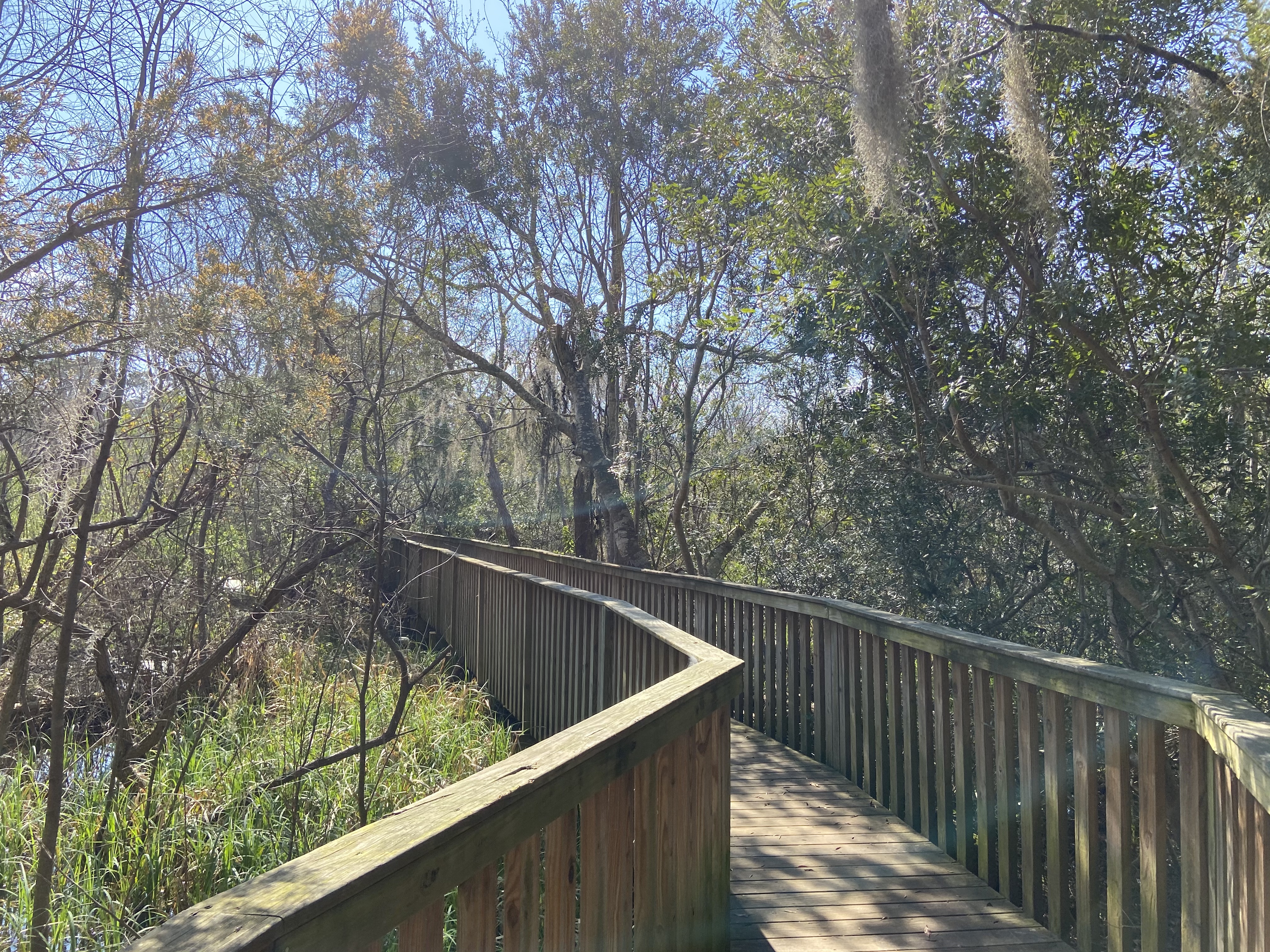 The trails aren’t terribly long but they take you through swamps, bogs and around two small lakes. It was as we were walking by Lake Mary that we had our first encounter an alligator. And by “encounter” I mean we whispered, “oh my gosh, oh my gosh, oh my gosh”, while we quickly walked past and avoided eye contact.