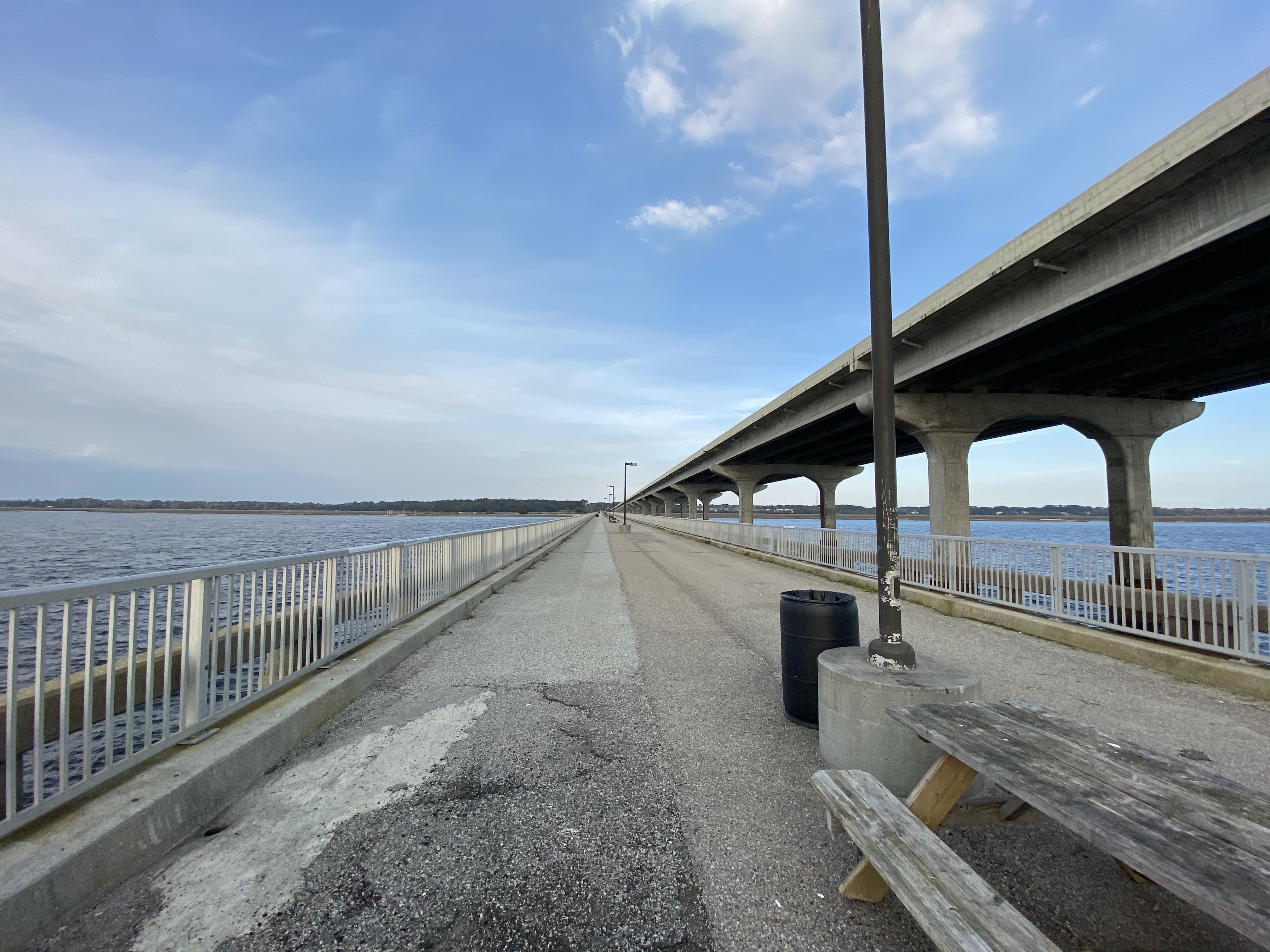 Instead we stopped again at the end of the Edward Burton Robert Bridge that takes you back to Port Royal. There is an old bridge turned fishing pier with beautiful views of the water. This one also said “no dogs allowed” but we decided to break some rules and there were other dogs on the bridge as well.