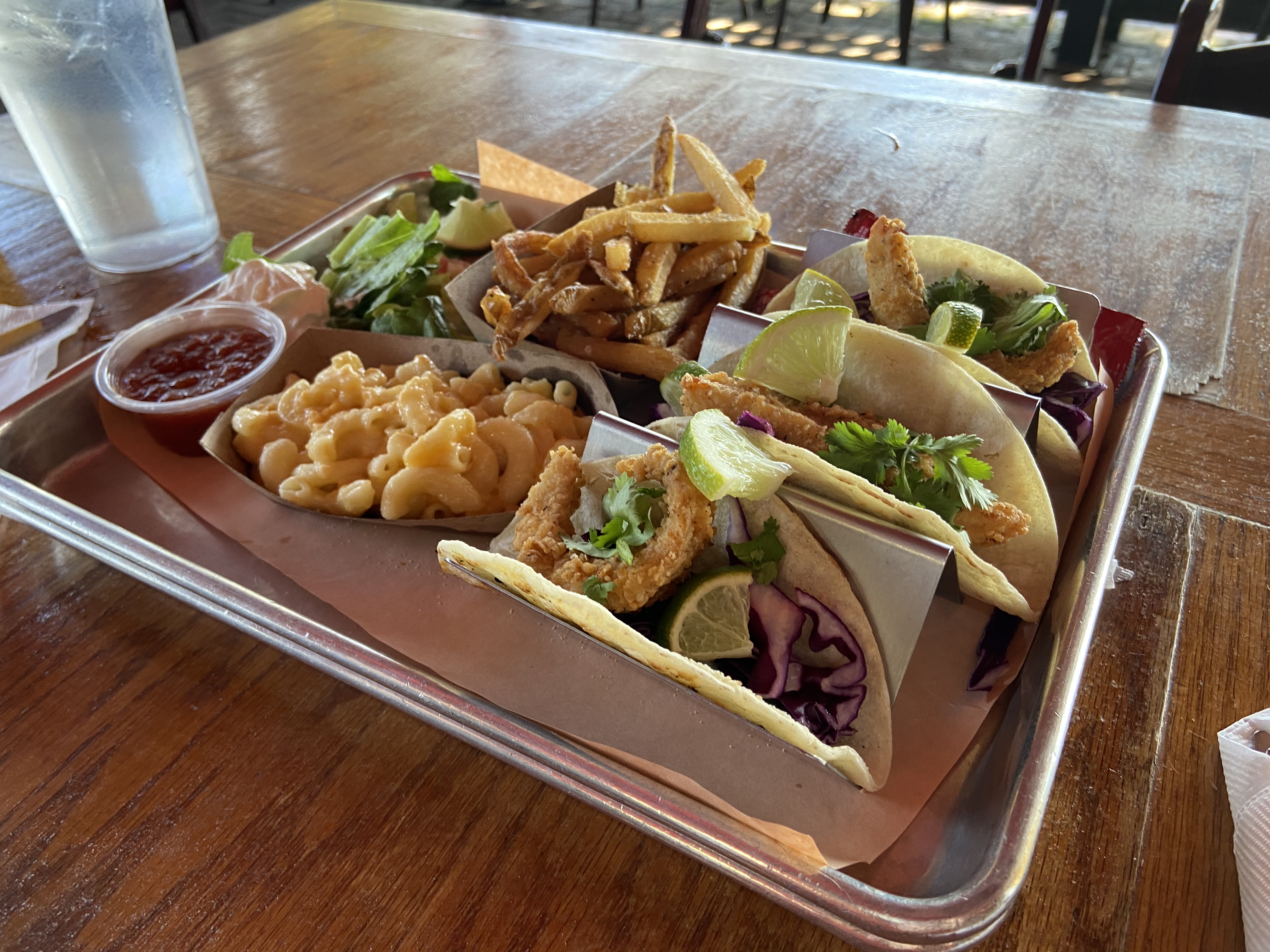 Fish Camp on 11th Street is in Port Royal. They have an awesome dog-friendly patio right on the water that overlooks a small number of shrimp boats. We went there a few times for dinner but we also went on a fishing charter that allows you to bring your catch back to Fish Camp where they will prepare it for you! Pictured above is our redfish meal.