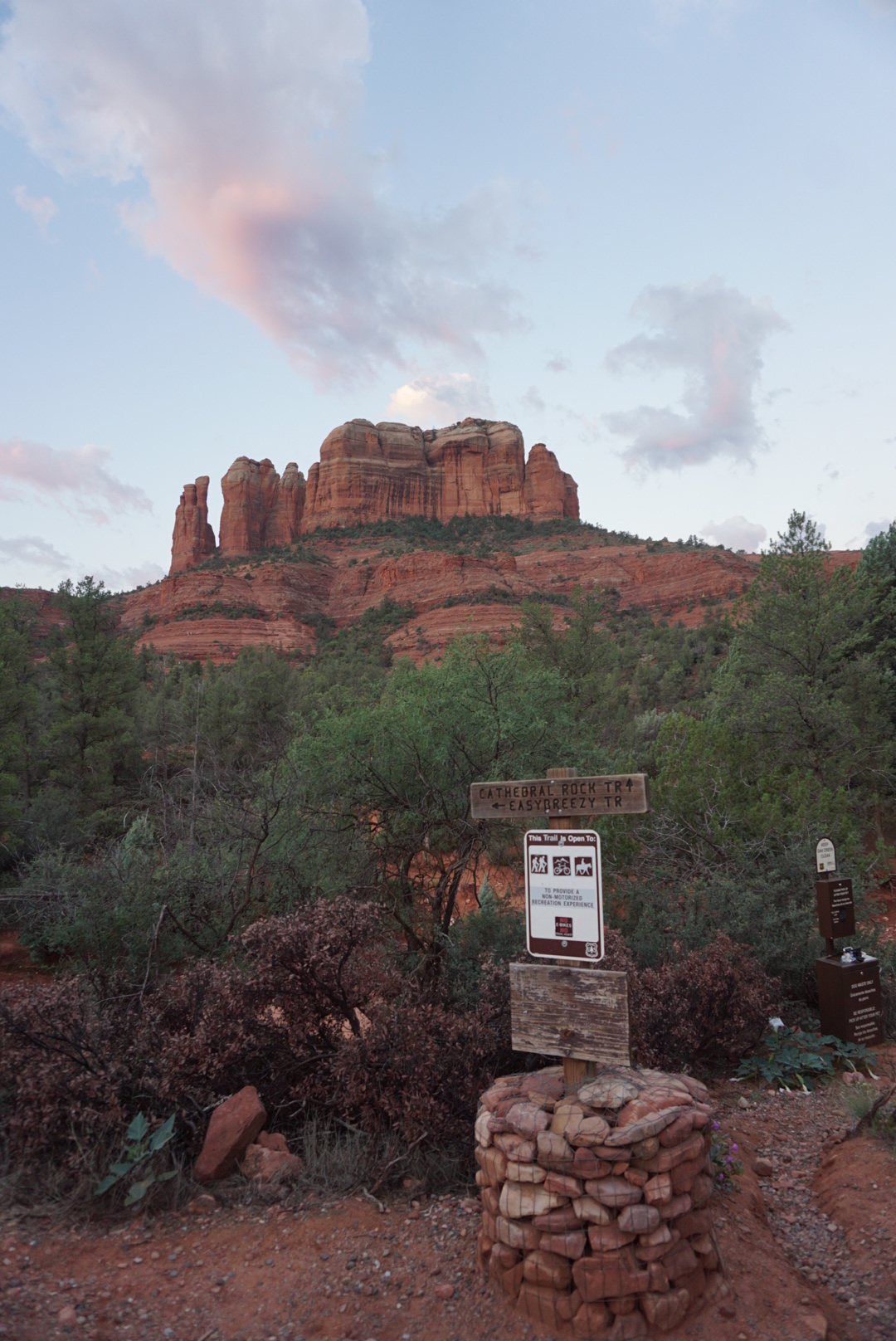 On our last full day in Sedona, we woke up early for a sunrise hike up Cathedral Rock. We had heard that you need to arrive early to get a parking spot at the trailhead. We arrived a little before 6am and there were only a few spots left. It was so worth it though. The hike is semi-difficult with a lot of scrambling (a.k.a. using your hands to climb) but it was a great challenge with rewarding views along the way.