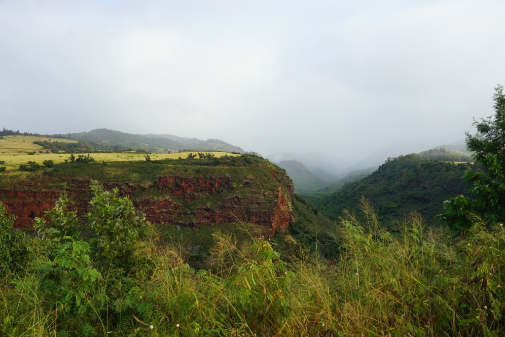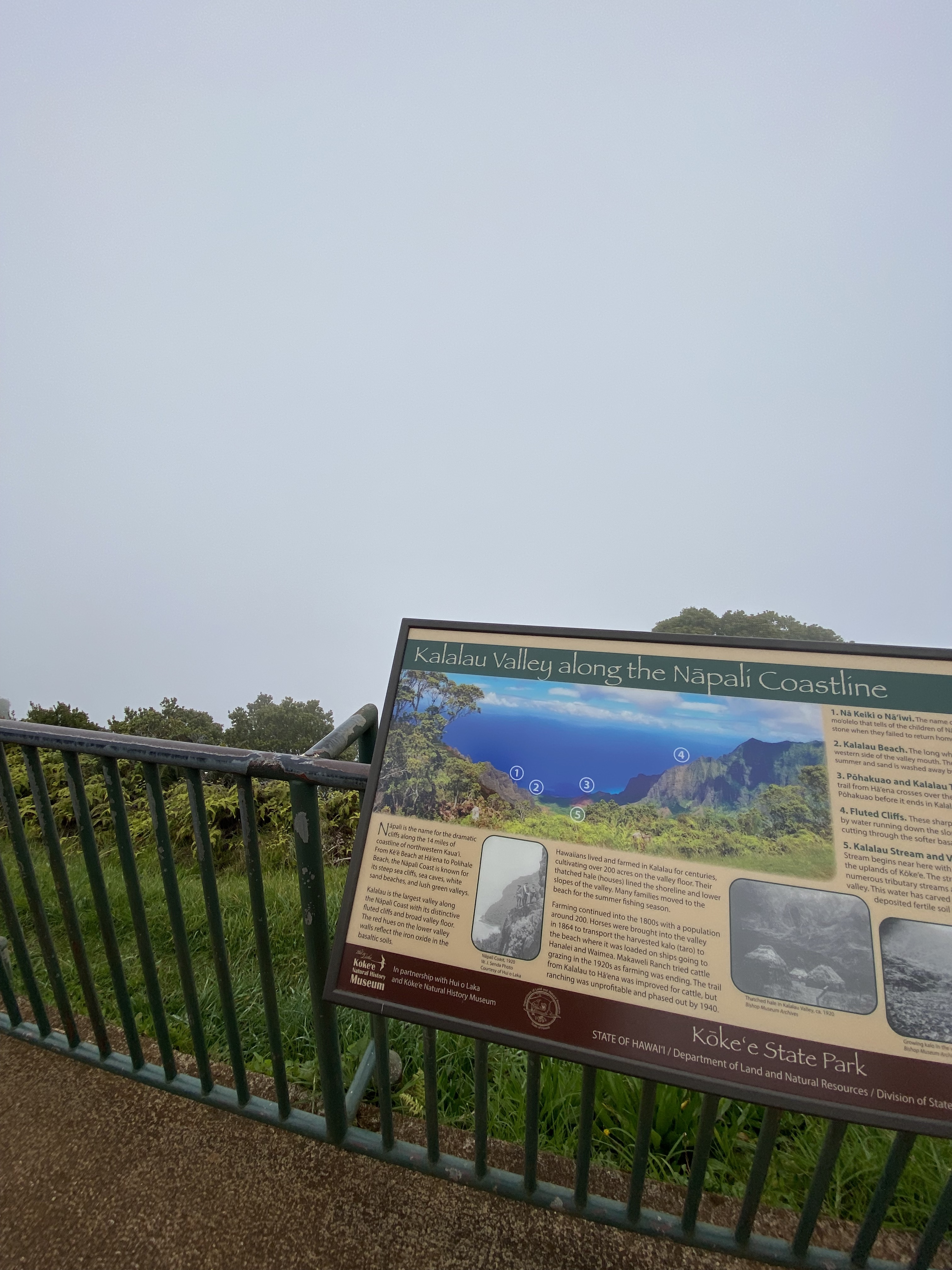 We built up an appetite on the hike so we stopped at the only restaurant in the park, Koke’e Lodge Cafe & Bar. As we were eating, some thick clouds rolled in. We continued on into Kōkeʻe State Park to check out the rest of the overlooks but unfortunately the fog was too thick to see anything (as it often is).