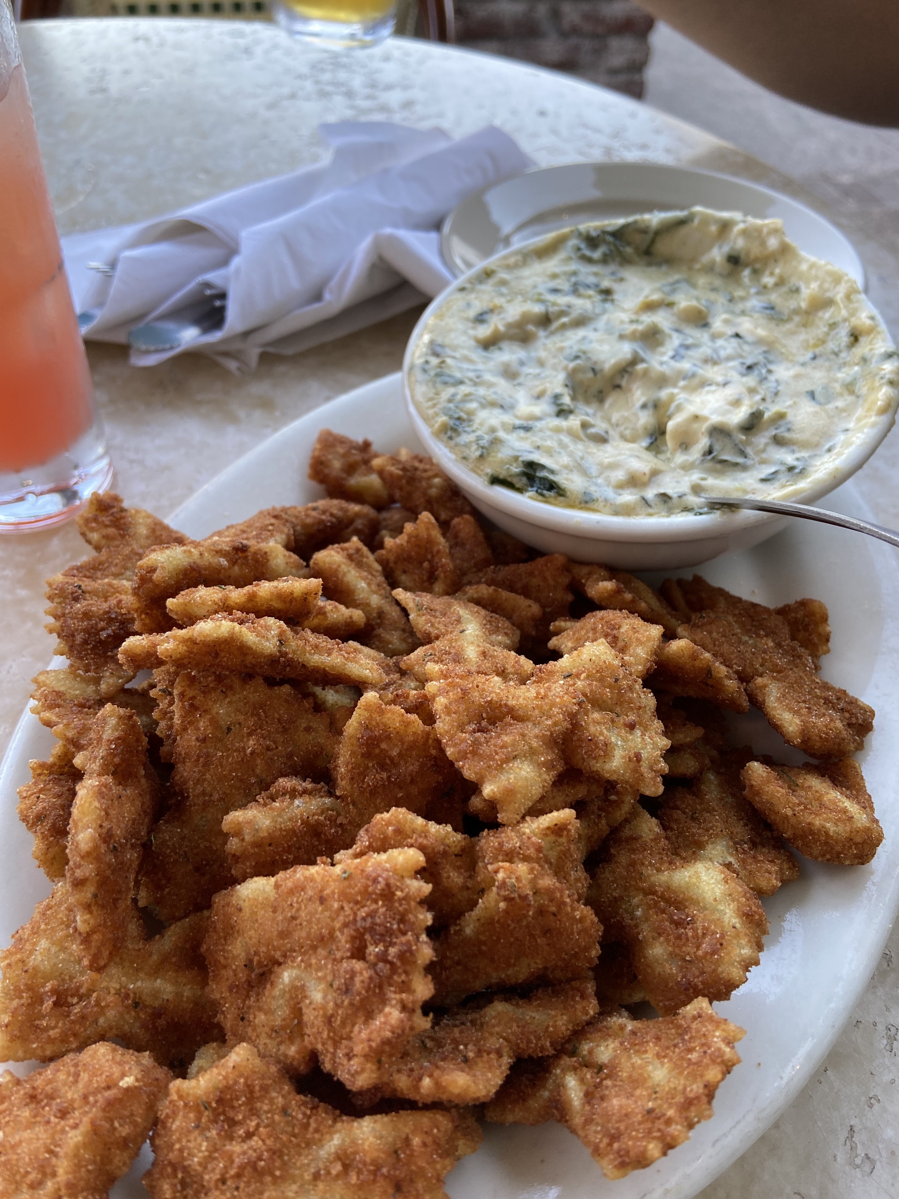 Someone recommended Trapani’s to us on our very first day in town. It took us a few weeks but we finally stopped by for dinner and it was the best meal we’ve had so far! The spinach artichoke dip comes with fried bowtie pastas for dipping! And the ahi tuna nachos were even better than what we had in Hawaii. We’re already planning on going back one more time before we head back north.