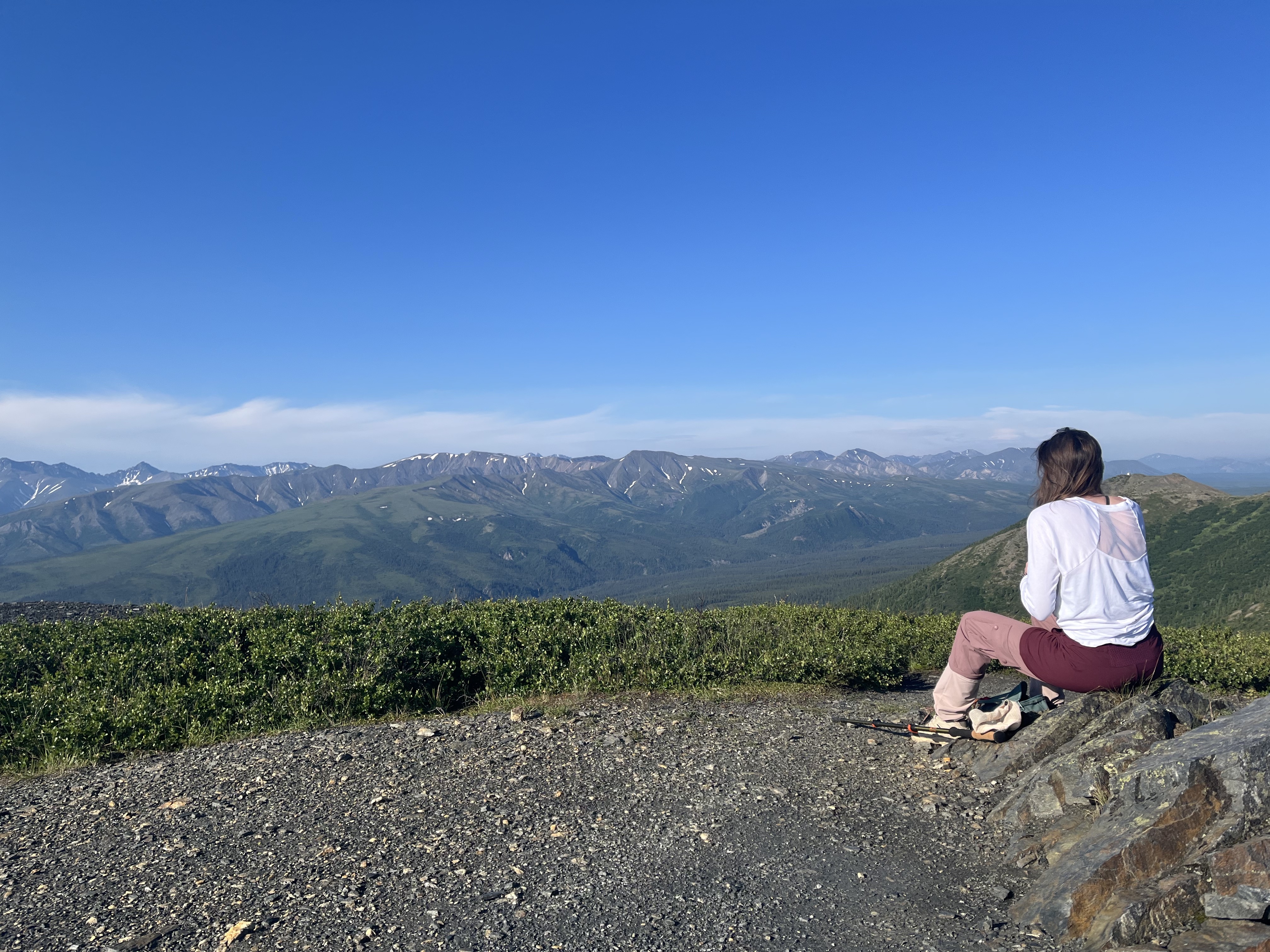 On our second day at Denali National Park, we woke up bright and early (thank you time change) and began the Mount Healy Overlook Trail around 7 a.m. It was July 4th so we expected there to be a lot of people on the trail but I guess everyone else slept in and we only saw a few other hikers. The trail ends at 2.7 miles and 1,700 ft of elevation gained but we continued on a little further towards to the top of the mountain.