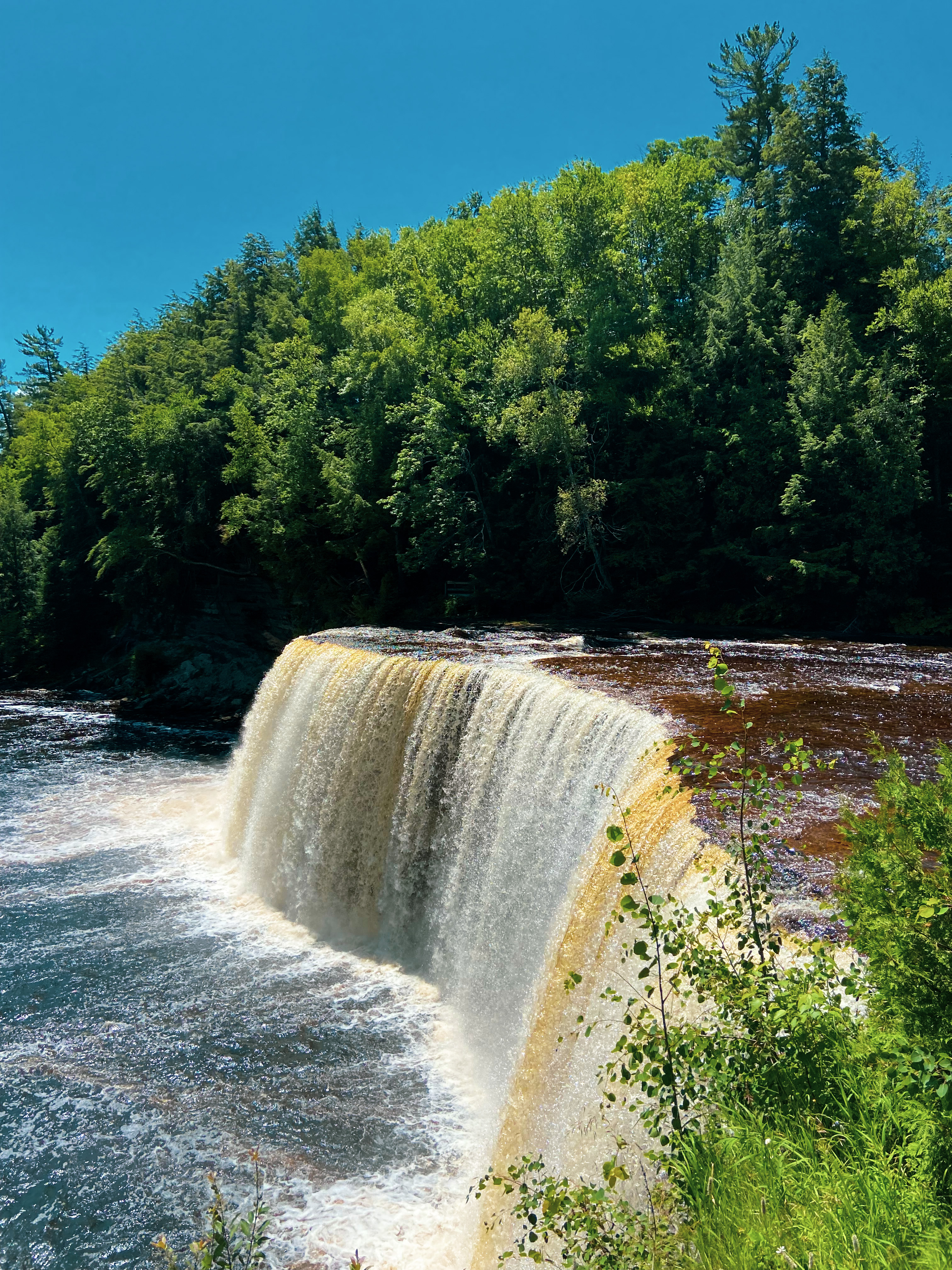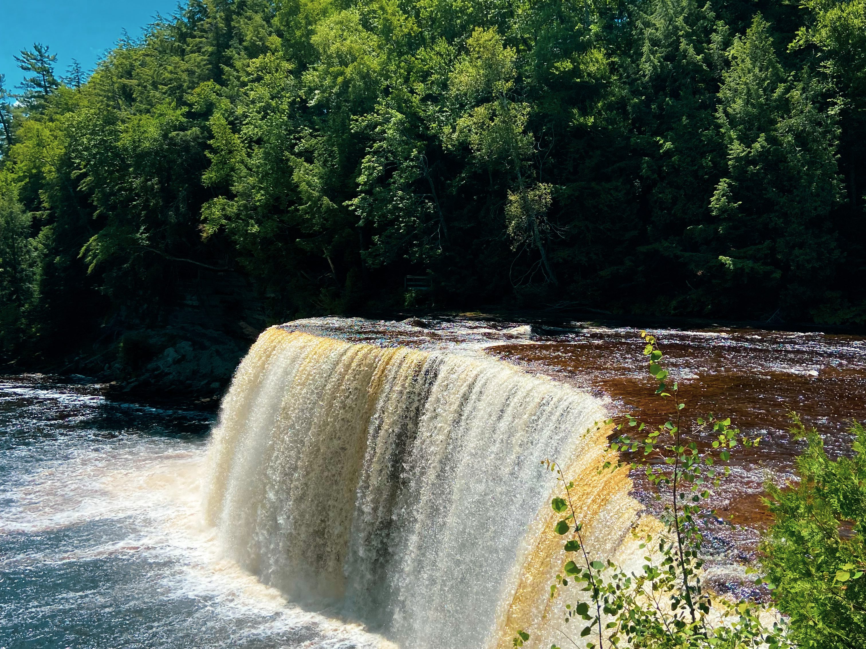 The Tahquamenon Falls are not only the the biggest falls in Michigan, they are the 3rd largest east of the Mississippi. They are famous for their copper color caused by the tannin leached from cedar swamps that drain into the river.