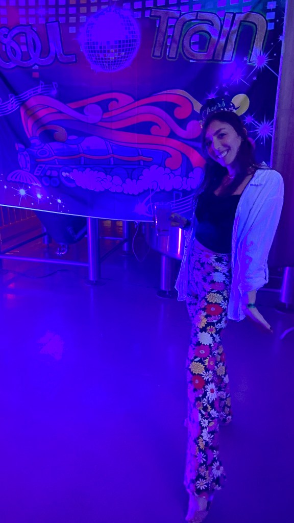 And lastly, we rang in the new year at a ’70s themed party hosted by Galveston Island Brewing. I purchased flowery disco pants at the local Walmart and we boogied the night away!