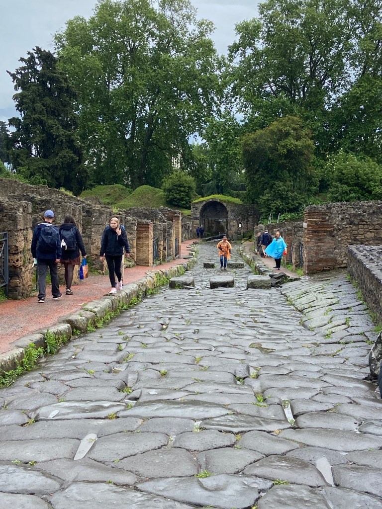 There are so many details that remain. She showed us how to differentiate the shops from the homes. You can still see fountains, frescos and grooves in the roads from the chariots. The two main things missing are anything organic and the marble that was taken and repurposed by scavengers.