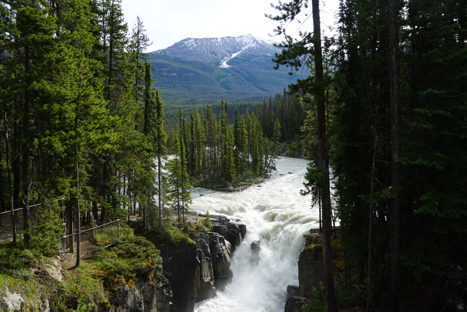 The next morning, we had quick a coffee at the van and continued north up the parkway to Sunwapta Falls.