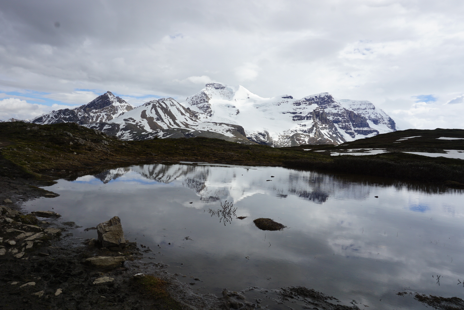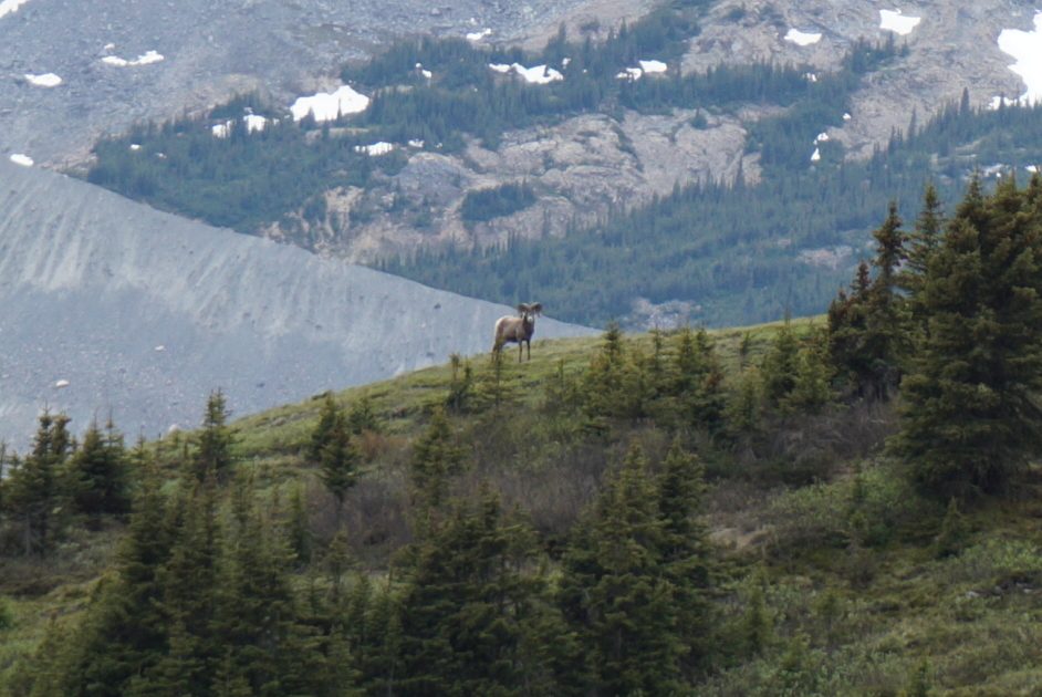 The weather was a little moody so we drove back down the parkway to do another hike at Wilcox Pass. It was a fun trail that takes you up into the snow. Here we had our first wildlife sighting – a bighorn sheep.