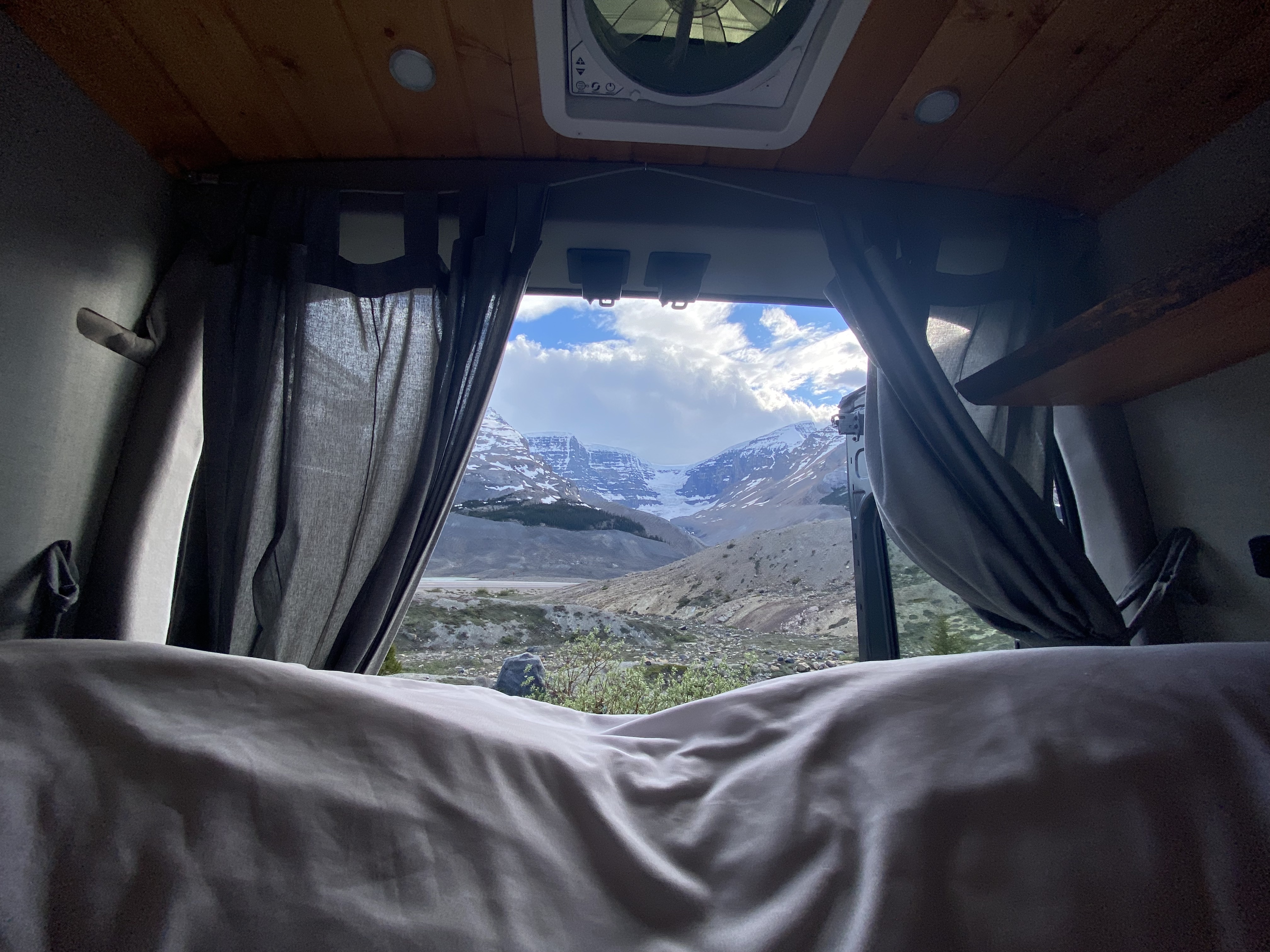 We spent the night at the Icefields RV Camping lot with amazing views of the glaciers out our window.