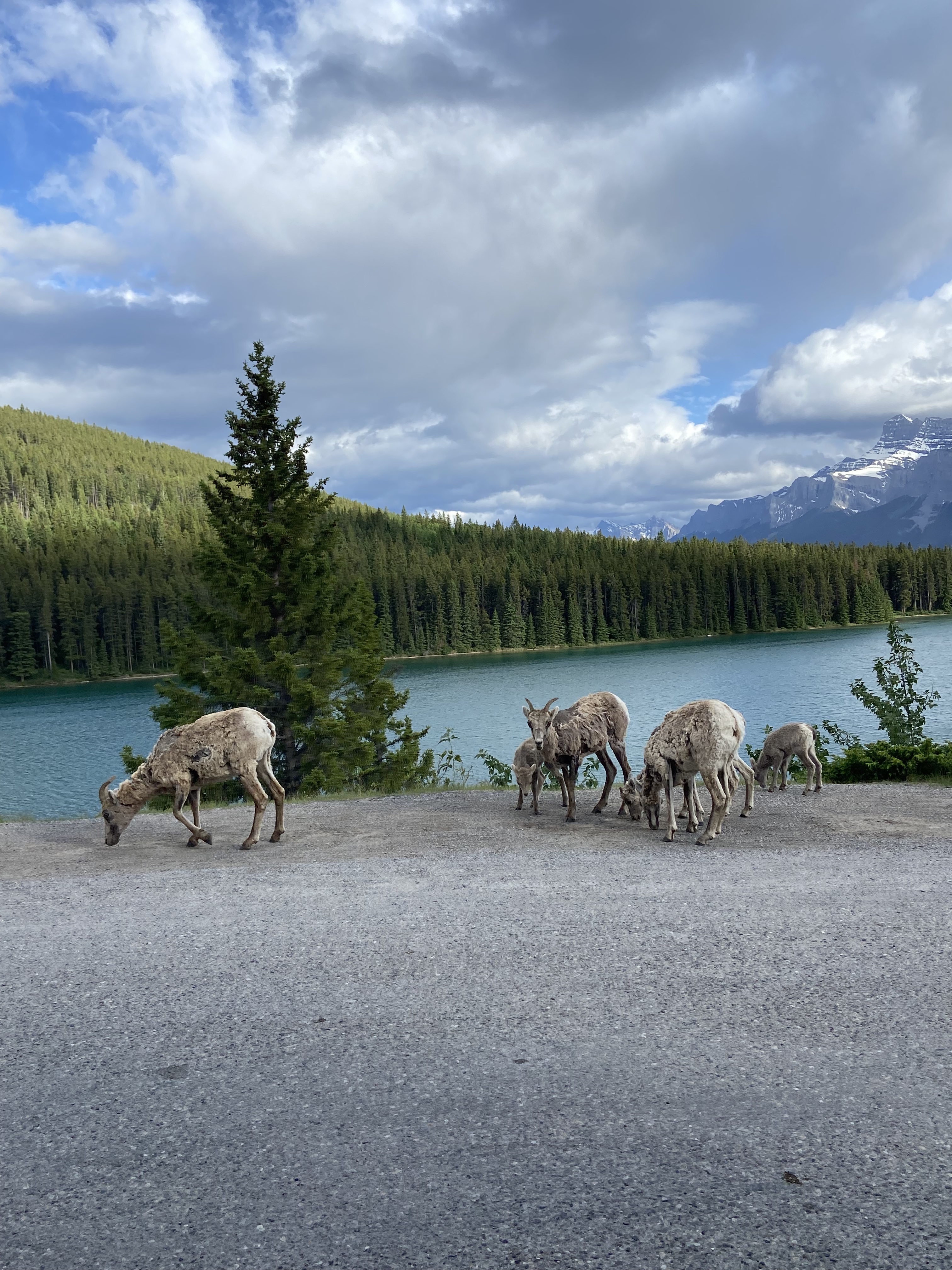 We ended the day by checking out Minnewanka Lake which was really close to our campground. We were taken aback by how impressive it was. It was surrounded by mountains and we saw a few different herds of mountain goats.