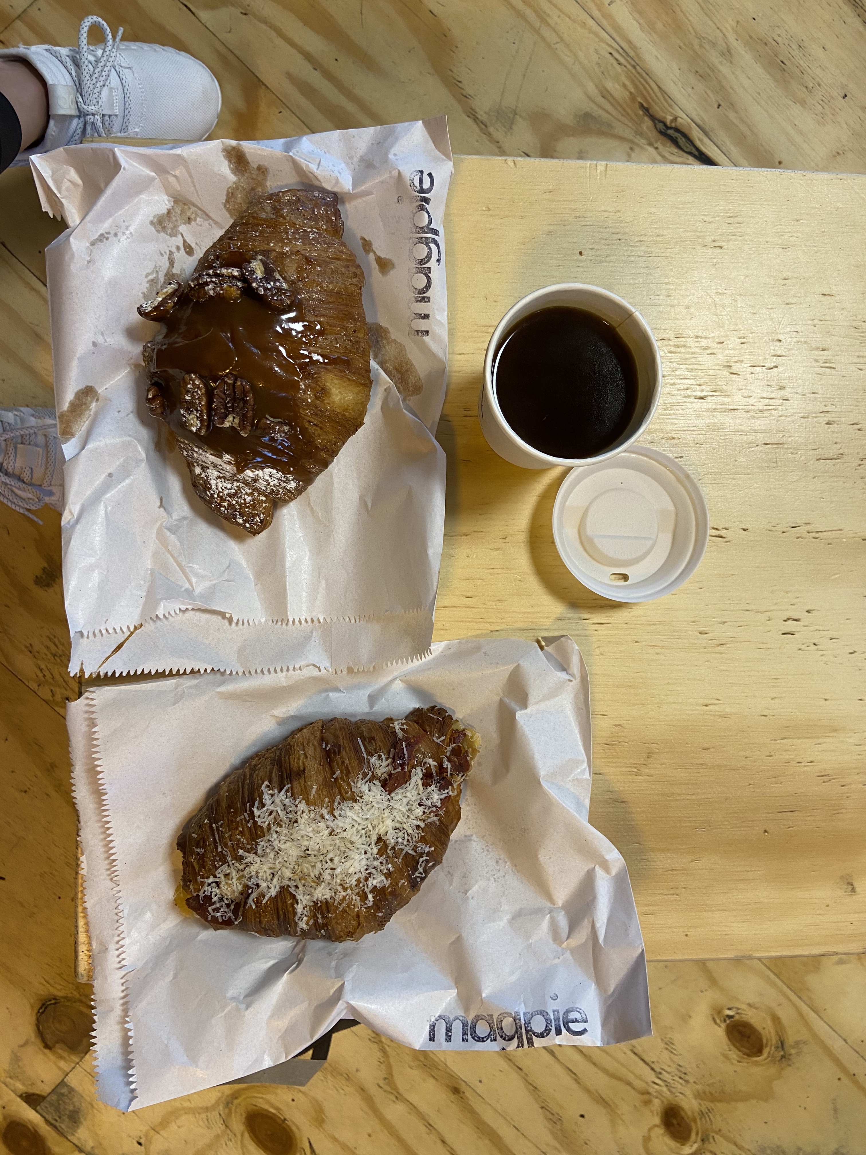 The next morning, we hurried over to Magpie Bakery before they opened. We had seen them going viral online and knew that you had to get there early becaue they are only open until they sell out. We arrived 15 mins before open and were still about the 8th people in line. It was SO worth it though.