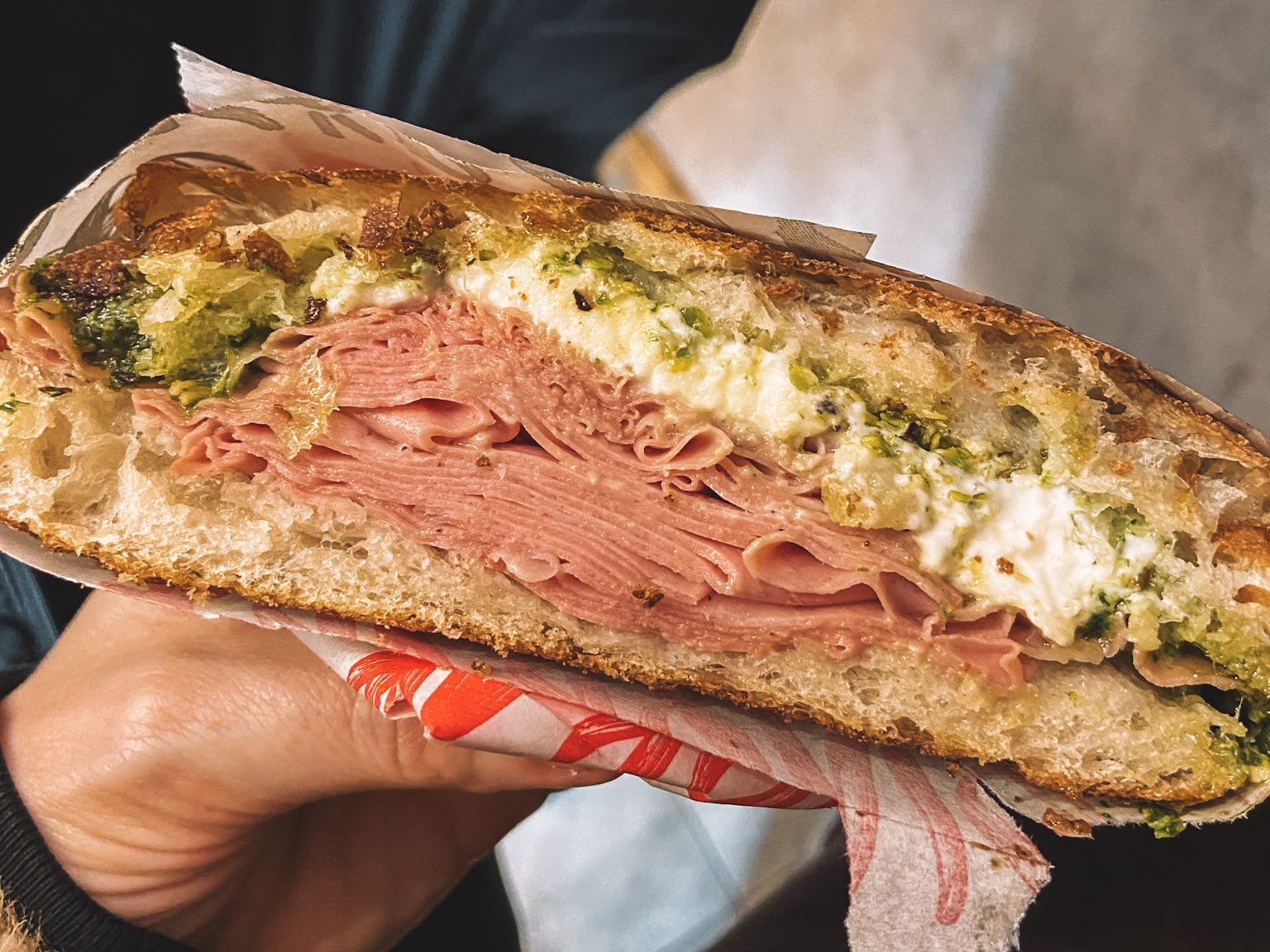 What’s even more iconic than the Prado? The viral ham sandwich we saw on Instagram. So that’s where we headed next. Divorare serves an epic burrata, mortadella, pistachio, pesto, focaccia sandwich, and it lived up to the hype.