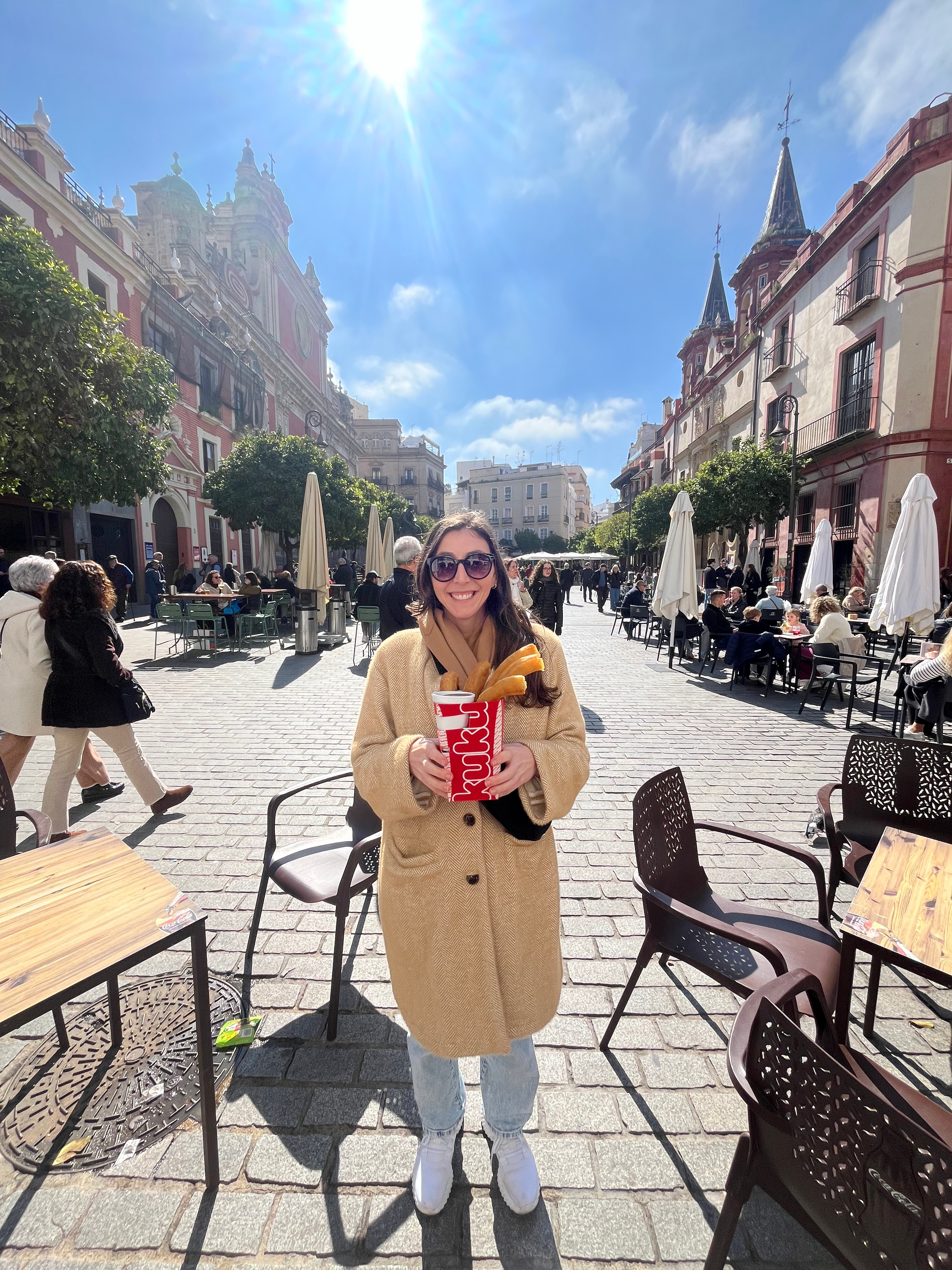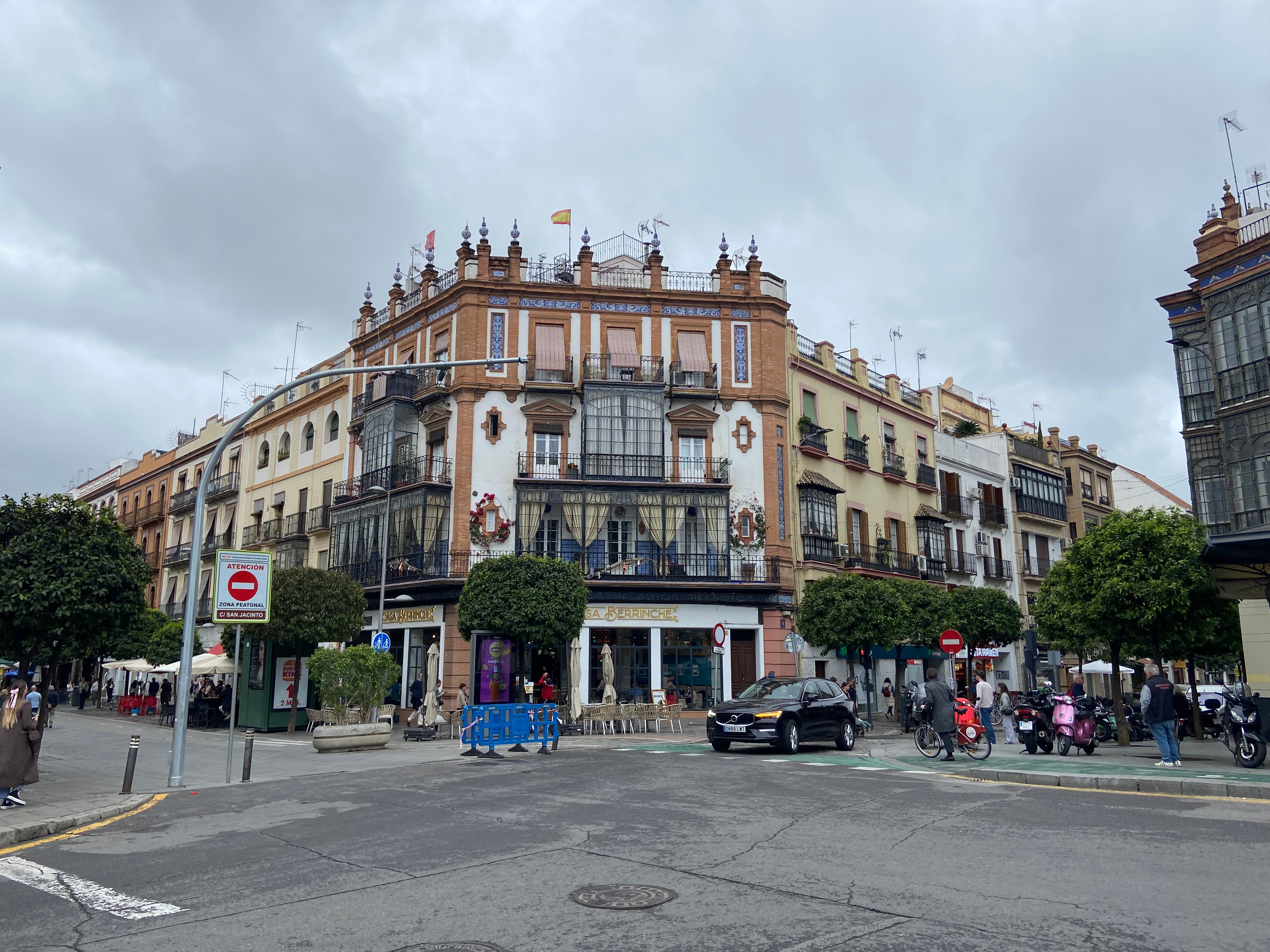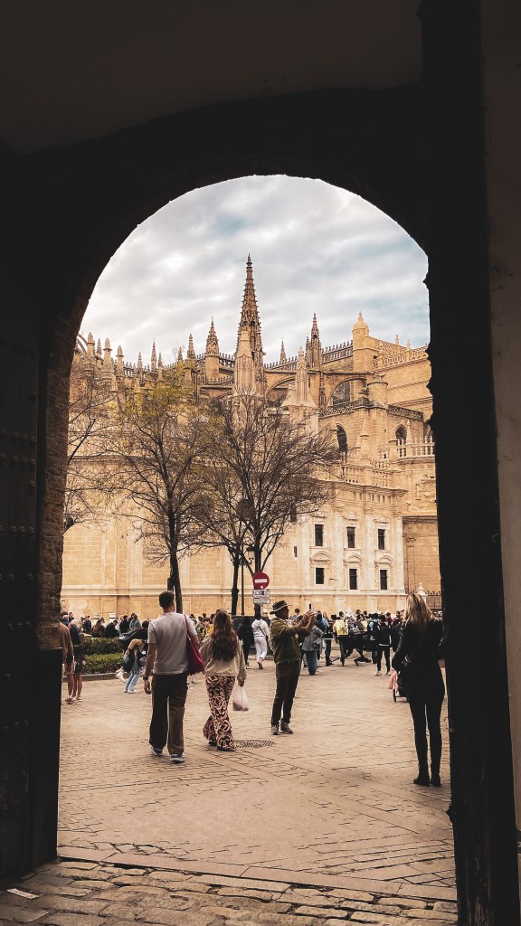 Touring the historic royal palace Real Alcazar is one of the most popular things to do in Seville. We didn’t book tickets ahead of time. They were sold out online, and there was an hours-long wait in line to get them the day of. So instead, we followed our usual approach. We spent hours walking the orange tree-lined streets of Seville. And of course, more snacks.