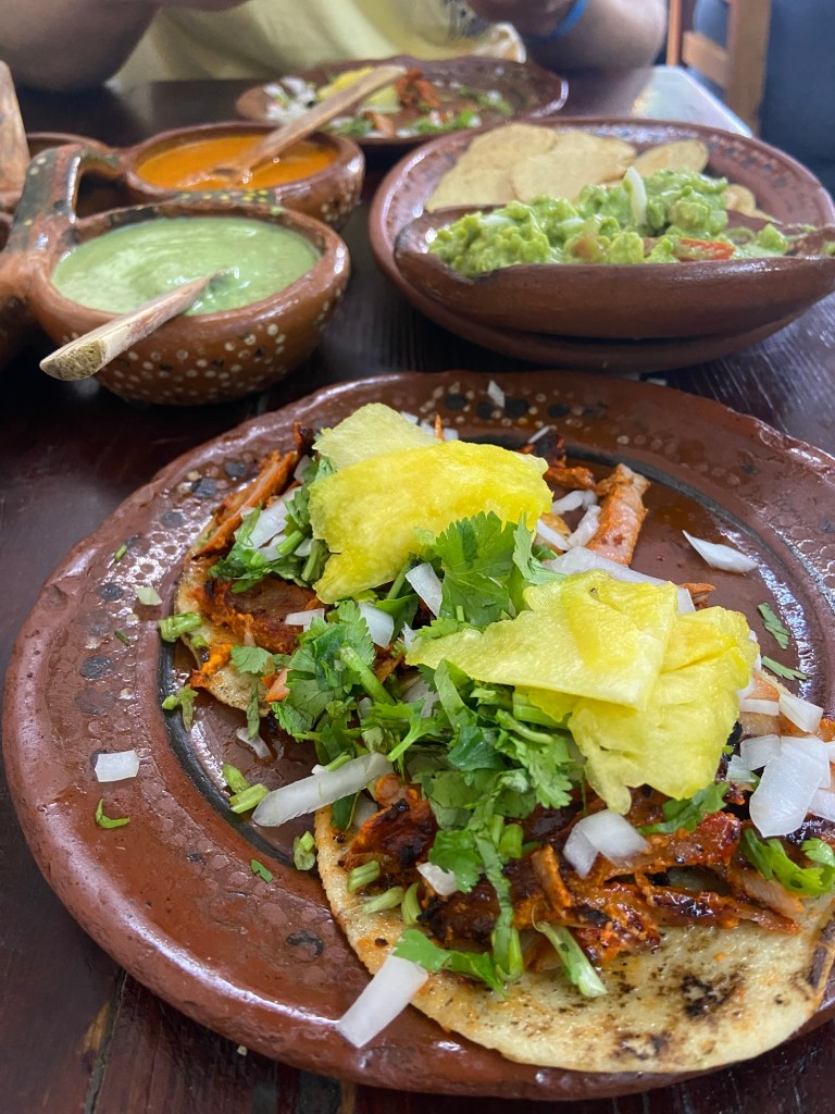 A must-visit for food lovers is the viral Panchos Takos. This popular spot can get incredibly busy, so I recommend arriving 30 minutes before opening to avoid waiting for hours. Everything we tried was delicious, but the Al Pastor tacos and Volcanes are a MUST.